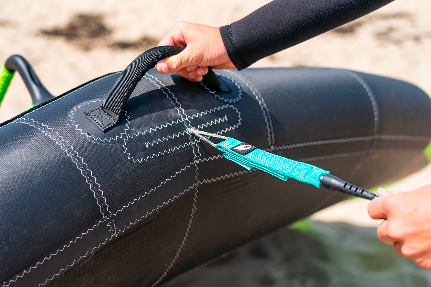 Leash de wing largable, conçu pour se clipser facilement au harnais.