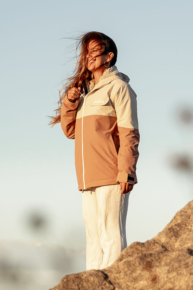Veste courte chaude, imperméable et doublée en sherpa pour femme.