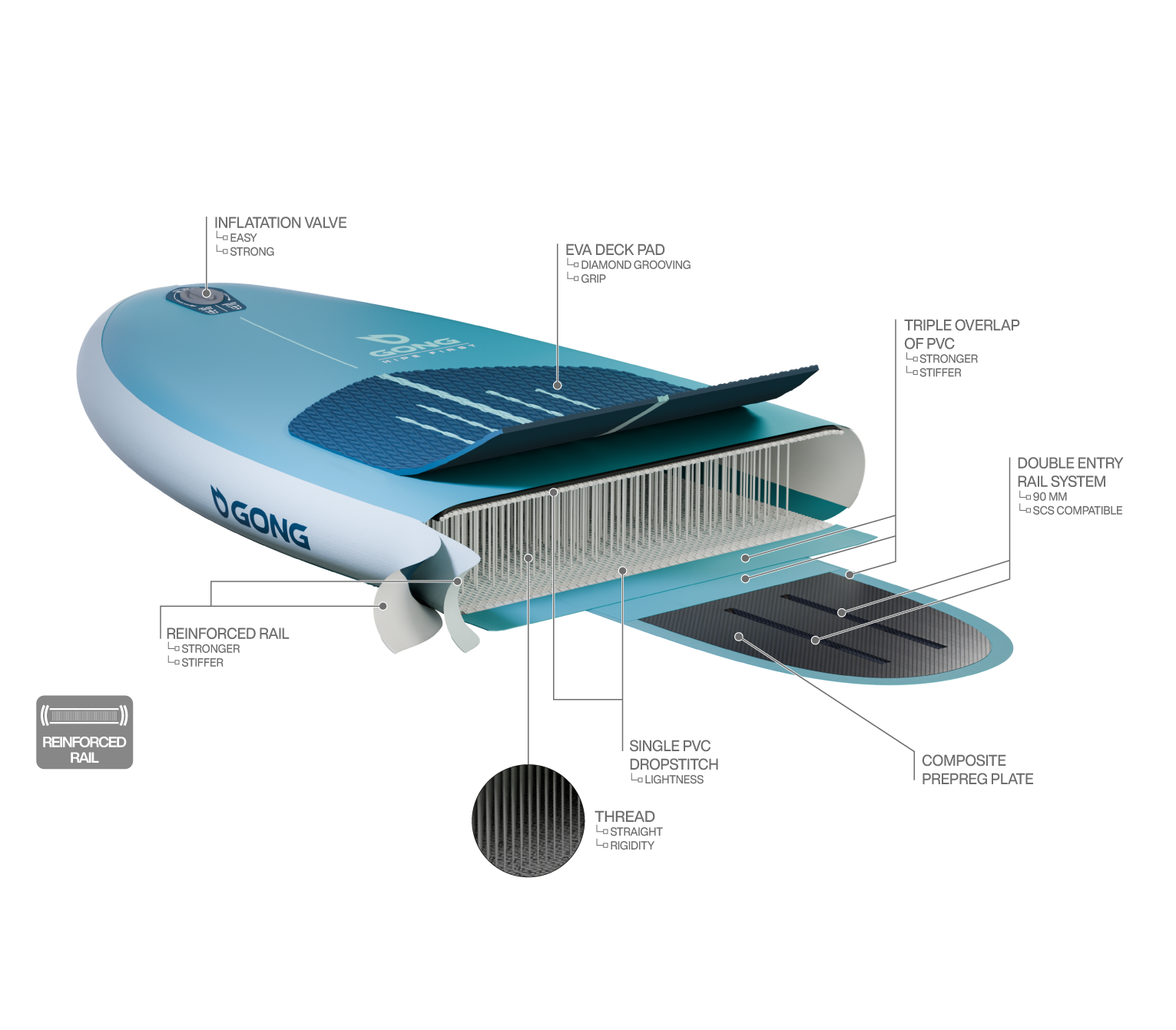 Planche de Wingfoil gonflable polyvalente aux hautes performances.