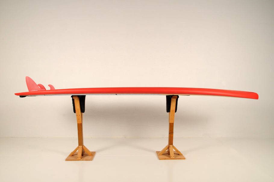 Le shape de cette planche mixe des programmes très éloignés, presque opposés. Les rails sont durs à l’arrière pour une accroche franche dans les courbes en surf, mais ultra classiques 50/50 au centre pour que la planche passe le plus facilement possible d’un rail à l’autre en surf. Et enfin ils finissent sur une étrave sexy (car fine). Le résultat est harmonieux et très efficace. La ligne de rail suit une courbe parfaite.