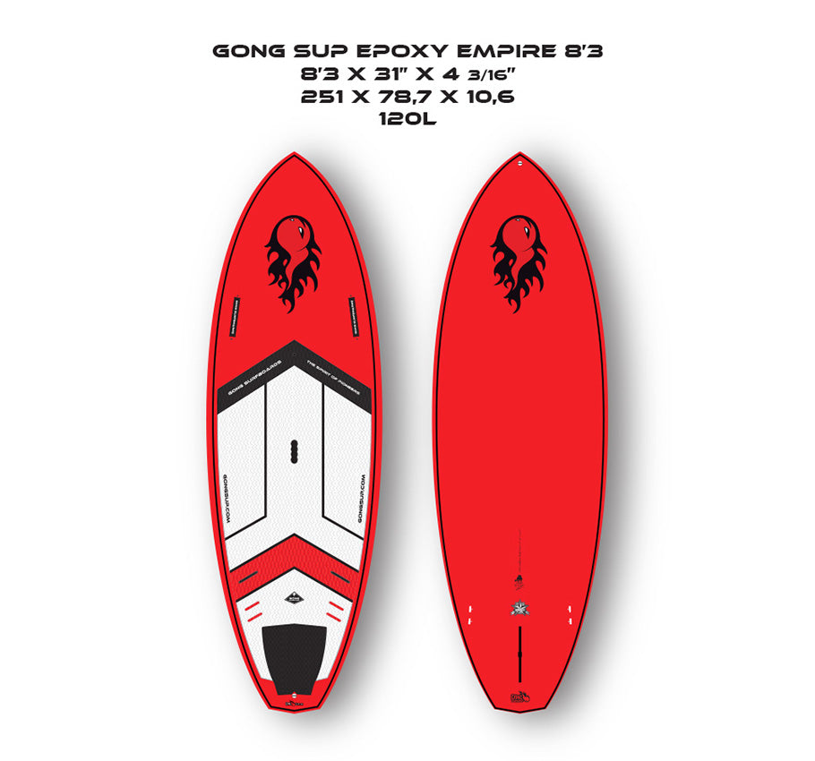 GONG SUP 8’3 Empire epoxy : la 8’3 Empire est idéale pour ceux qui veulent une planche qui marche tout le temps et partout, sans difficulté particulière, solide et au prix serré.