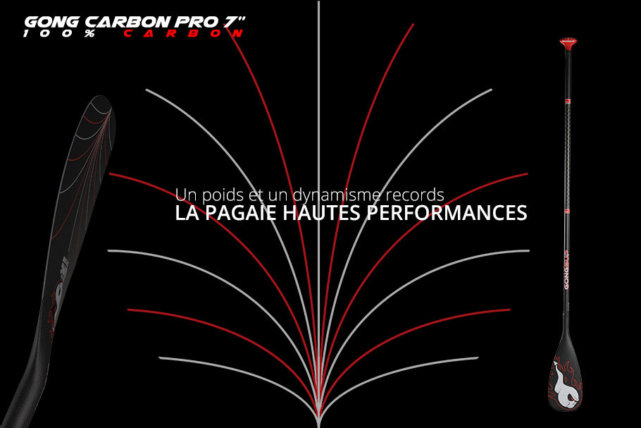 GONG Carbon Pro 7″ : une pagaie qui accélère très fort. Un poids et un dynamisme records pour vous offrir les meilleures performances dans tous les domaines, tout en économisant vos efforts et votre corps.
