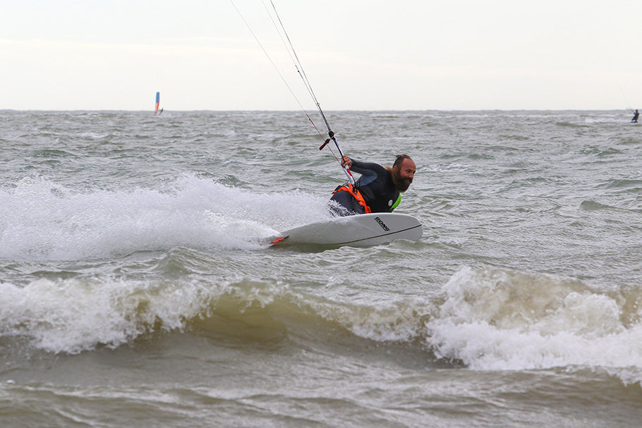 Kiteboarder : l’Ours en GONG Kite 5’4 catch Bamby et aile GONG Kite Strutless.