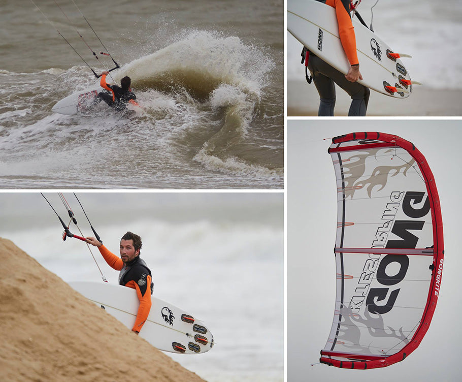 Kiteboarder : Antoine en GONG Kite 5’6 Lethal PU et aile GONG Kite 5m Draw.