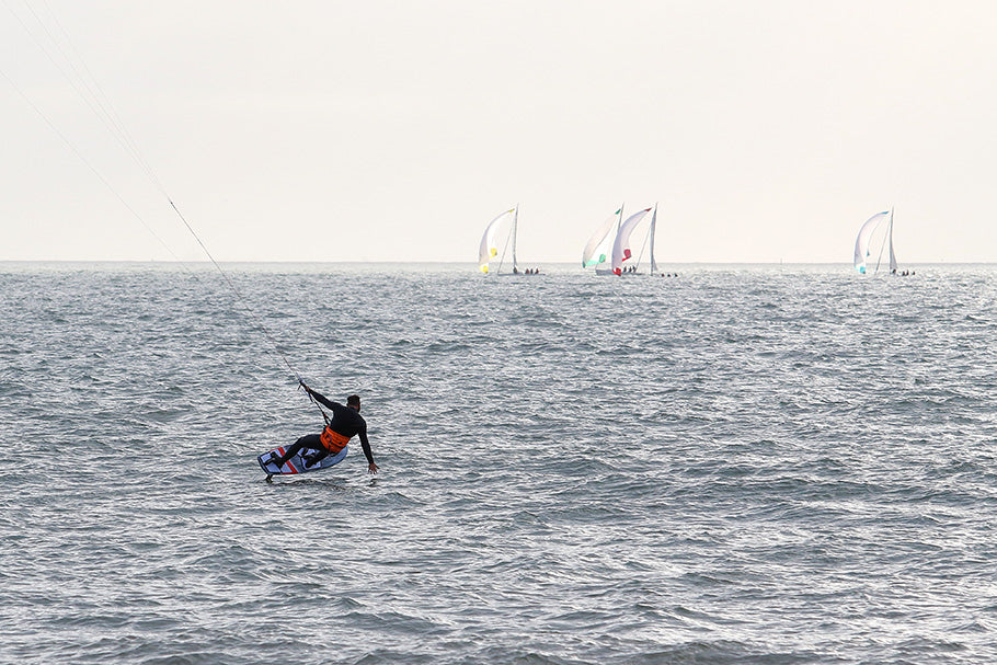 Foiler : l’Ours en GONG Kite 5’1 Matata Fiol PRO et aile GONG Kite Strutless green.