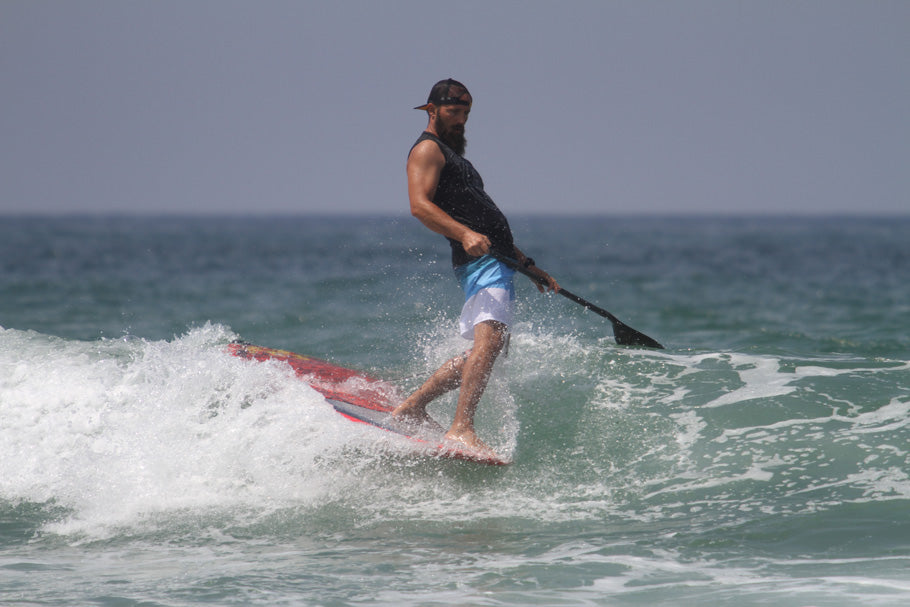 Shapeur surfeur : Patrice Guénolé en GONG SUP Soul 9’6 Caribou et pagaie carbon GONG.