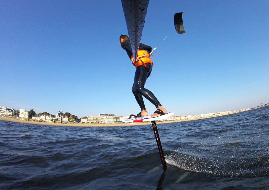 Kiteboarder : l’Ours en GONG Kite 4’6 Catch Foil et aile GONG Kite Struted V1.