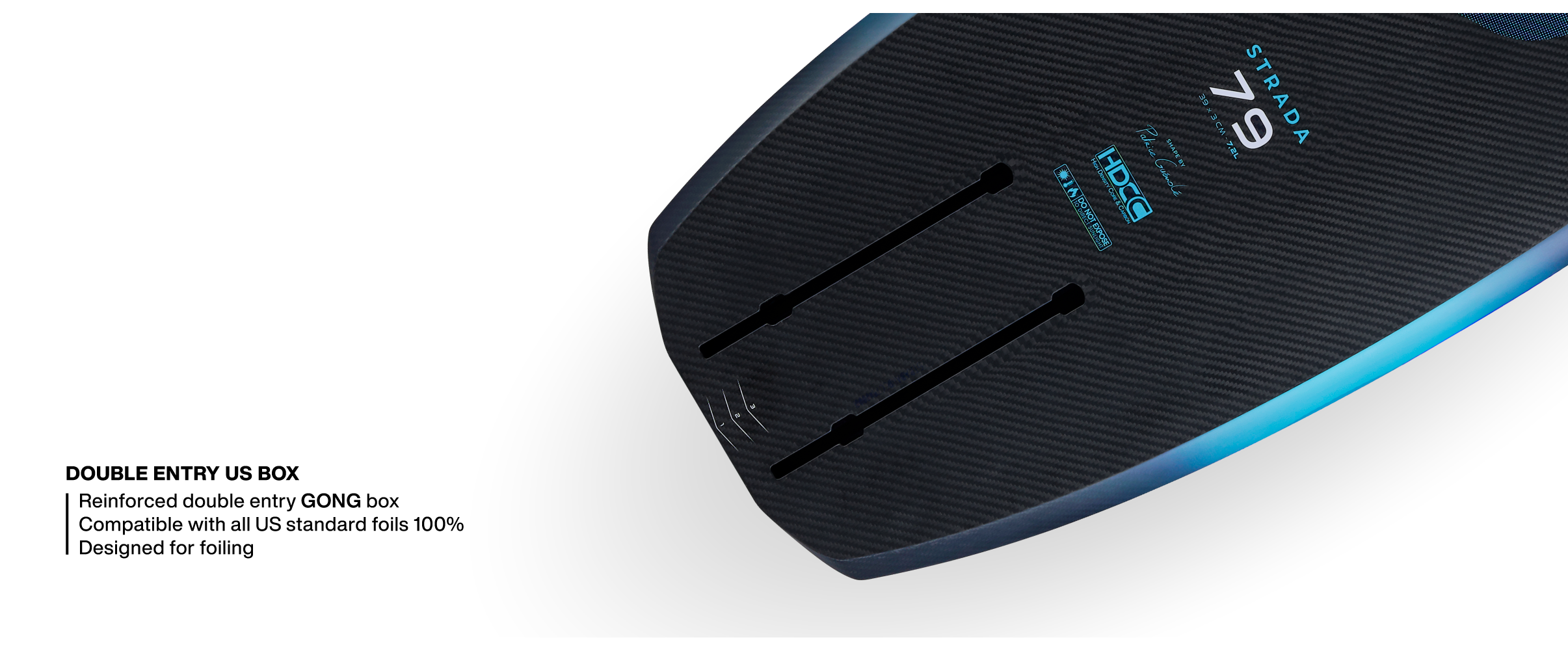 The Strada is equipped with our US dual-entry box system to accommodate the SCS, which has been launched on all our recent foil boards. It's so easy to install your foil with this system that you'll save time on the water.