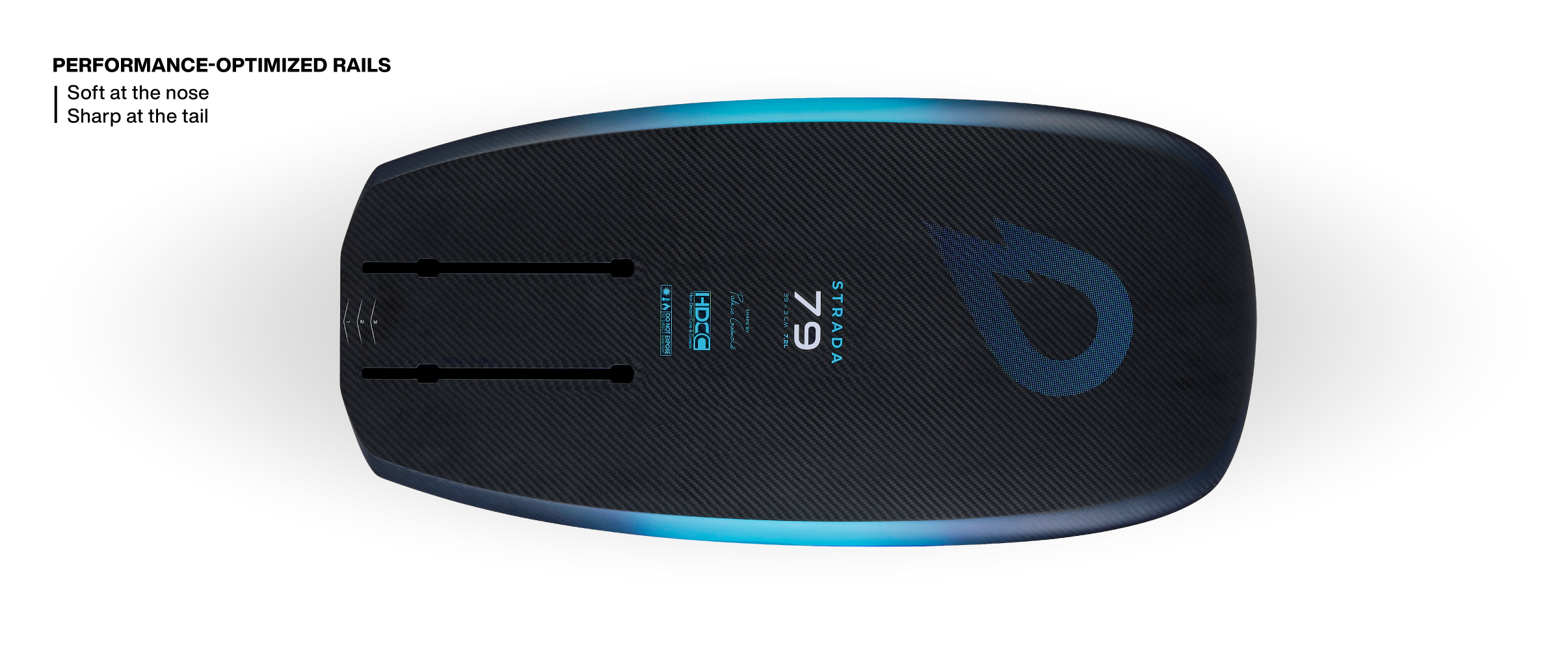 The Strada HDCC features a non-slip deck without an EVA pad, ensuring reliable and consistent grip. Foot/board contact is direct and more precise, with immediate energy transmission to the foil.