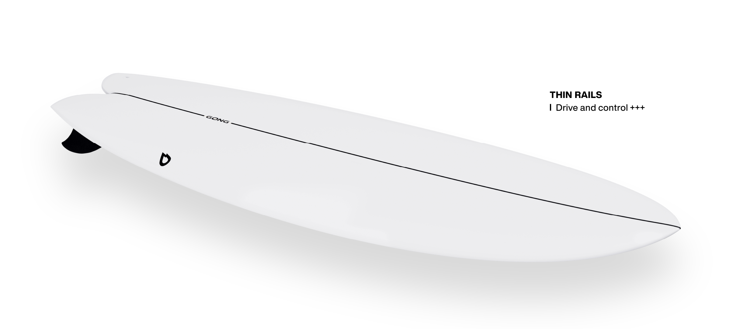 The rails are soft at the front for maximum forgiveness, and sharp and thin at the tail to provide control and drive in all phases of surfing.