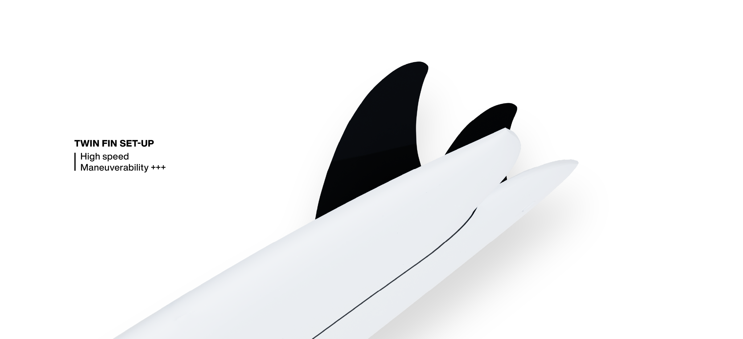 We keep the traditional Keel fins to preserve what works on this shape. This pair of fins minimizes drag to deliver maximum speed and that characteristic feeling of freedom underfoot, typical of the 'loose' feel of a fish. Their long base adds width to the turns while ensuring control and stability.