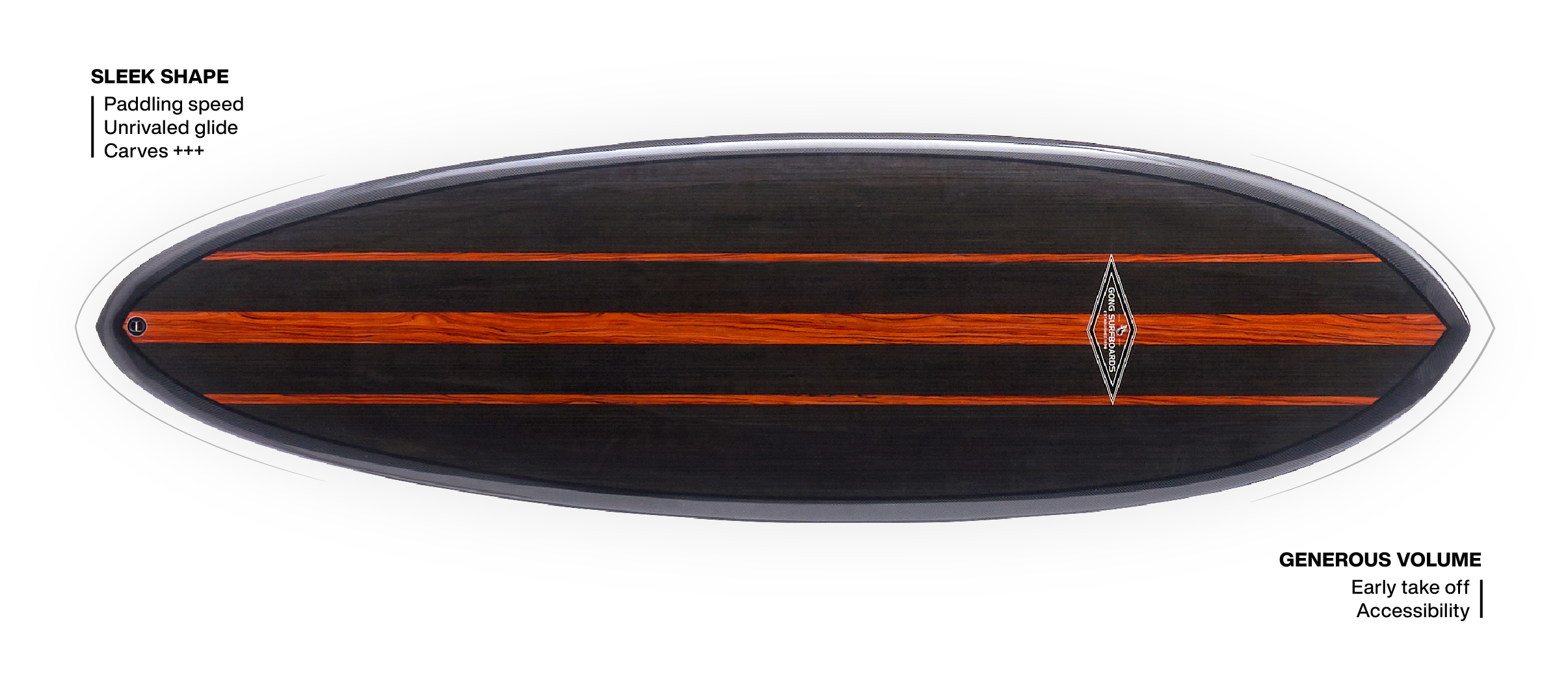 At first glance, its lines with a harmonious outline stand out. The shape feels perfectly balanced. It reveals a subtle mix of old school lines and performance; of tradition and modernity. The Carter adapts to your level, from the average surfer to the most experienced. With a comfortable outline and smooth carves, the Carter retains its accessible and versatile character, but its revisited shape becomes more feline, more incisive.