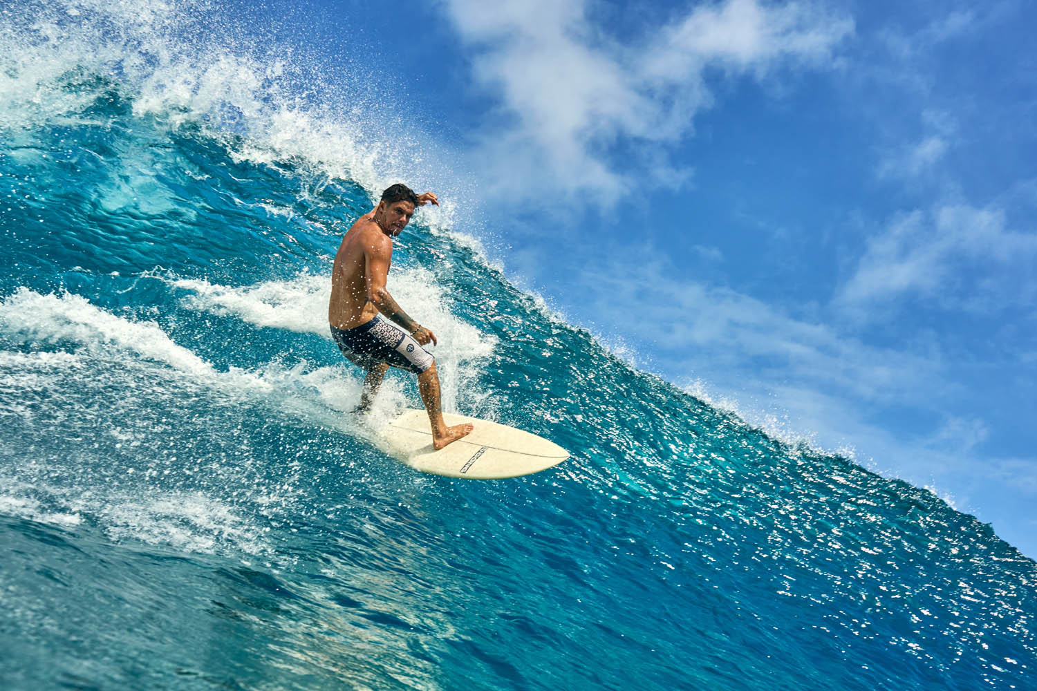 Performance Shortboard shaped for excelling in small to medium conditions and/or imperfect ones, and what we usually see happening during Heats. The Chemical gives its best in 1m/1m20 on wave that is somewhat mushy with very little shoulder. The combination between acceleration and pivot nulifies these conditions, it’s impressive efficiency and allows you to lay down all your moves in your repertoire. It’s an extremely nervy board, hyper-active and makes it possible to solicite the entire length of the wave where its natural speed makes for linking moves with fluidity. The width at the back foot is consistent and the kick quite low. The resulting acceleration is magic, with speed reached very quickly and within a very short distance making the completion of move easy and radical. The hull has had some work done : a simple pronouced concave under the front foot and a double concave running between the stance ending up in a Vee at the back foot. The rail to rail is instinctive, magic and the drive super precise, speed and maneuverability are explosive. This board is available in PU or EPS, 2 different forms of construction and in 7 different sizes to fit everyones sizes needs and skill level to coincide with your personnal discipline. A highly reactive, efficient Board who’s directionnal guidance’s instinctual and perfectly conducive to a moderne and dynamic drive.