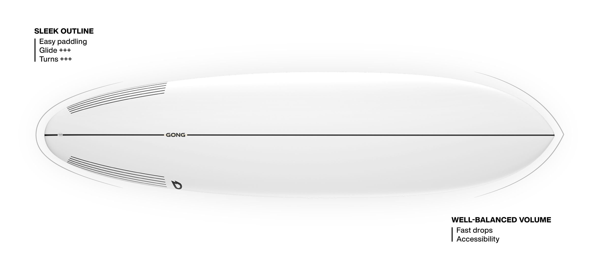 If today so many surfers have a mid-length under their feet it is not due to a simple fashion phenomenon. It takes one session only to understand how effective it can be. Enormous versatility, a shape more generous than a shortboard, but far from the dimensions of a longboard. A progressive rocker for more maneuverability, to turn every decision or trajectory in an instinctive flow of action. You can draw high lines, surf down the line, but you can cut your carves short on demand. You are not locked into a surfing style, your imagination is in command.