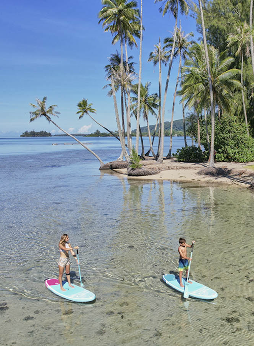 These Boards are offered in Pack form (paddle + leash), starting at 249€.