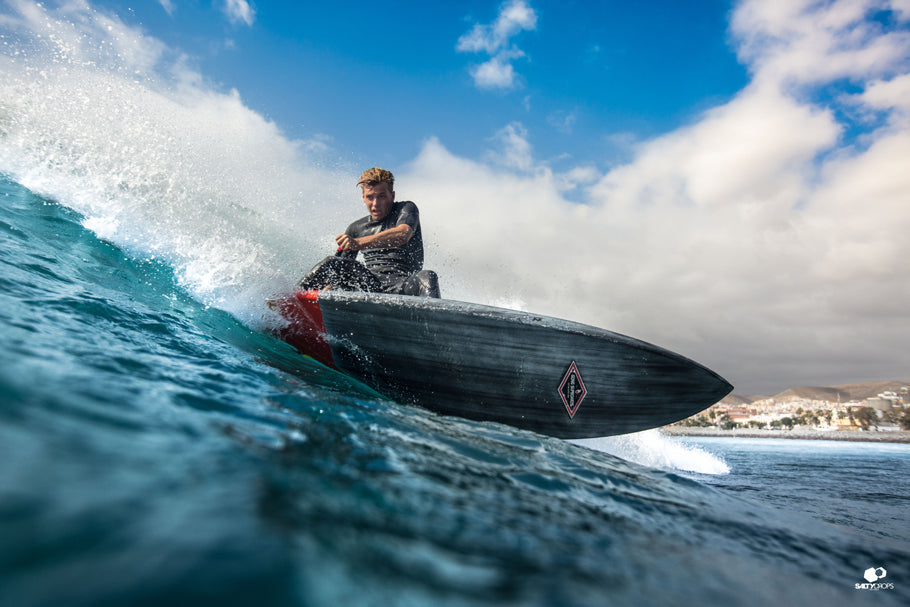 Moritz on his Curve at Paradize. SUPer : Moritz en GONG SUP Curve 7’4 et pagaie GONG Paddle.