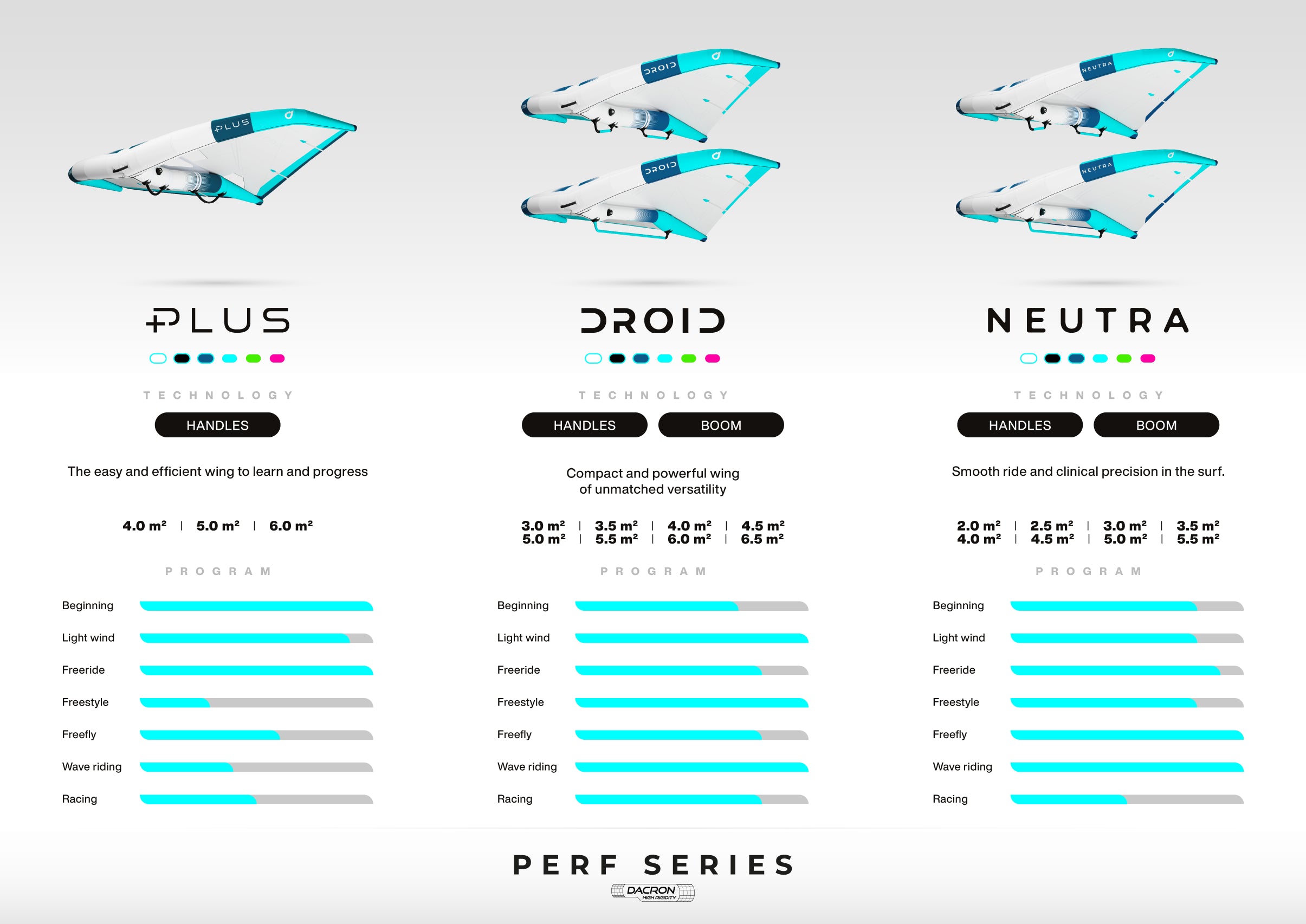 At the opposite end, PERF wings are extremely validated, safe, and intuitive. They are designed to be easy, ultra-reliable, and as effortless as possible. They are the perfect choice for flying without worrying, with full confidence.