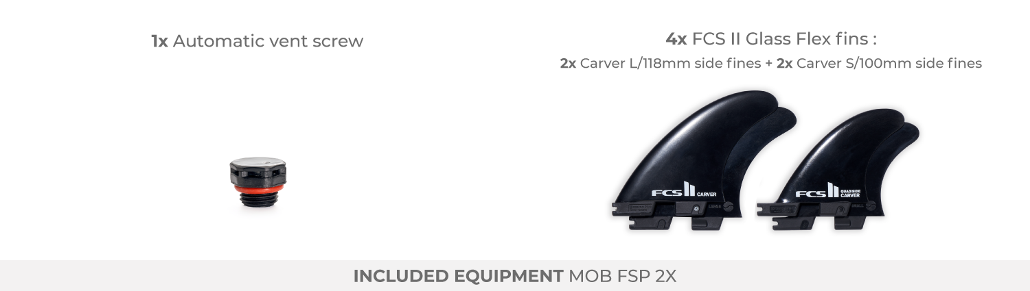 The Mob FSP 2X are equipped with our premium 5mm thick 3D Function pad for maximum grip and comfort. This non-slip deck coating is “smart” as it provides different sensations in different parts of the deck, with groovings and openings designed for proprioception. Your feet are better positioned and informed of their exact position to give you a more precise surf.