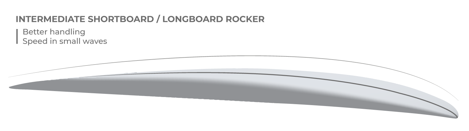 • A simple concave at the center to stabilize the board when paddling and channeling water to the fins to maximize lift and acceleration with an important front foot grip.
