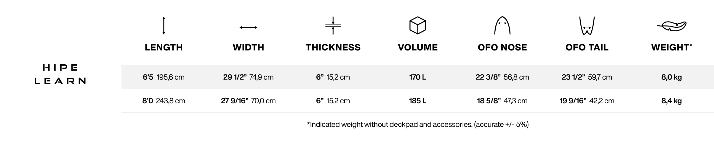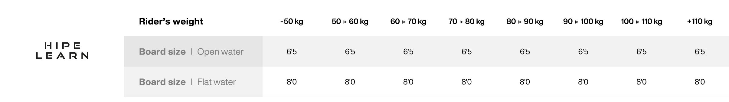 - HIPE LEARN: the inflatable for learning: flat on the water, first flights and SUP foil compatible.