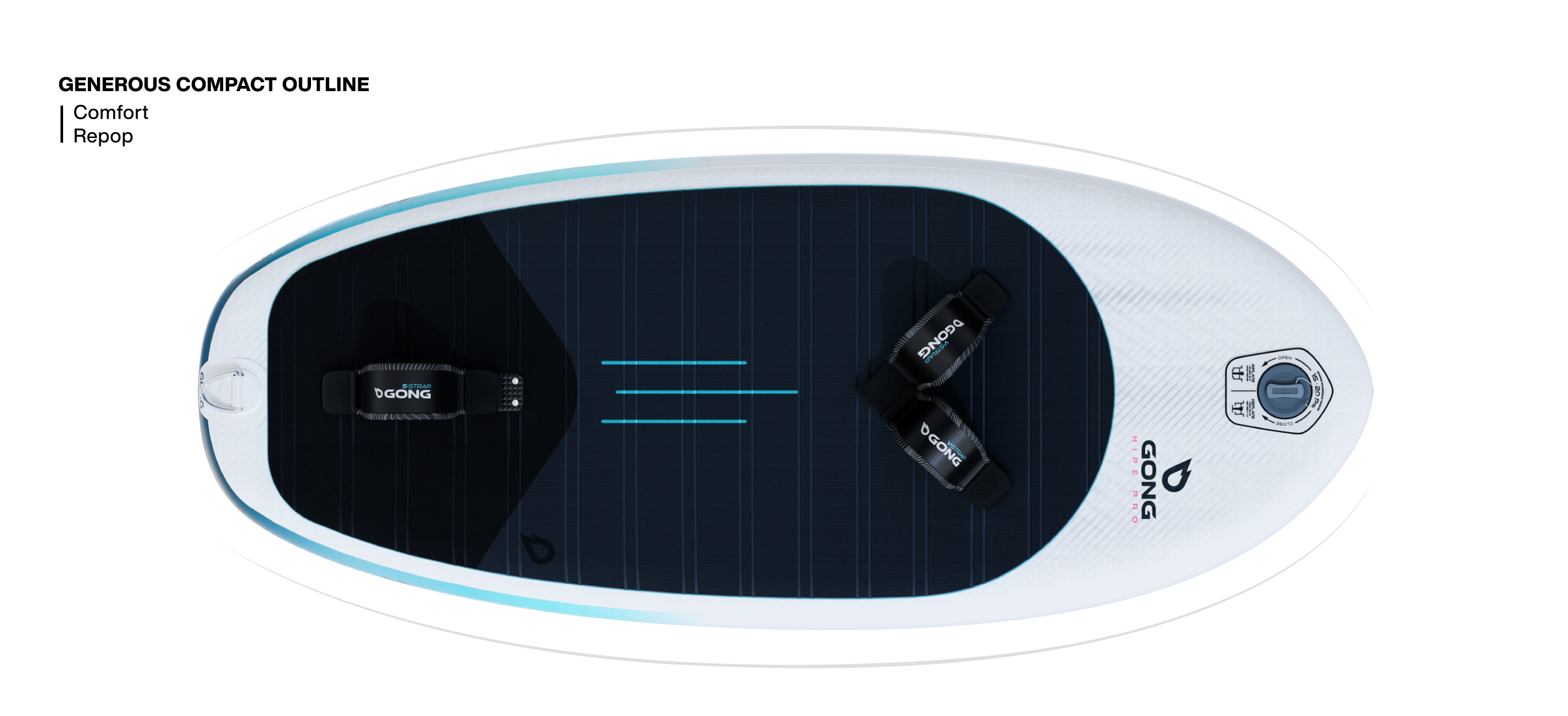 Very different from the dropstitch coating of the board, you immediately feel if your foot is properly placed on the pad.