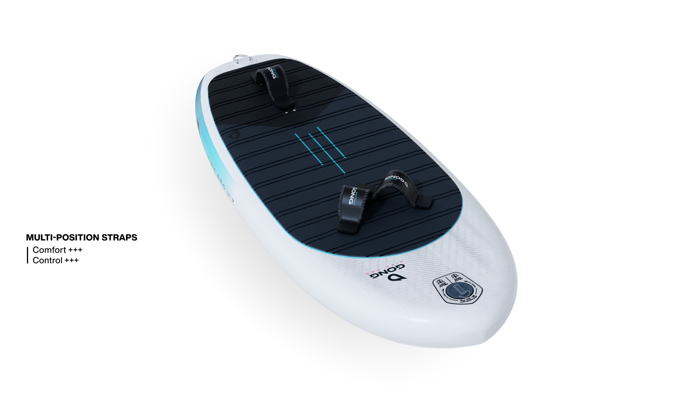 With 3 rear strap positions, you can adjust your stance to suit your riding style: comfort or commitment, YOU choose YOUR program. Without straps, the pad remains flat underfoot and you no longer feel any discomfort because the strap inserts are cleverly integrated into the pad.
