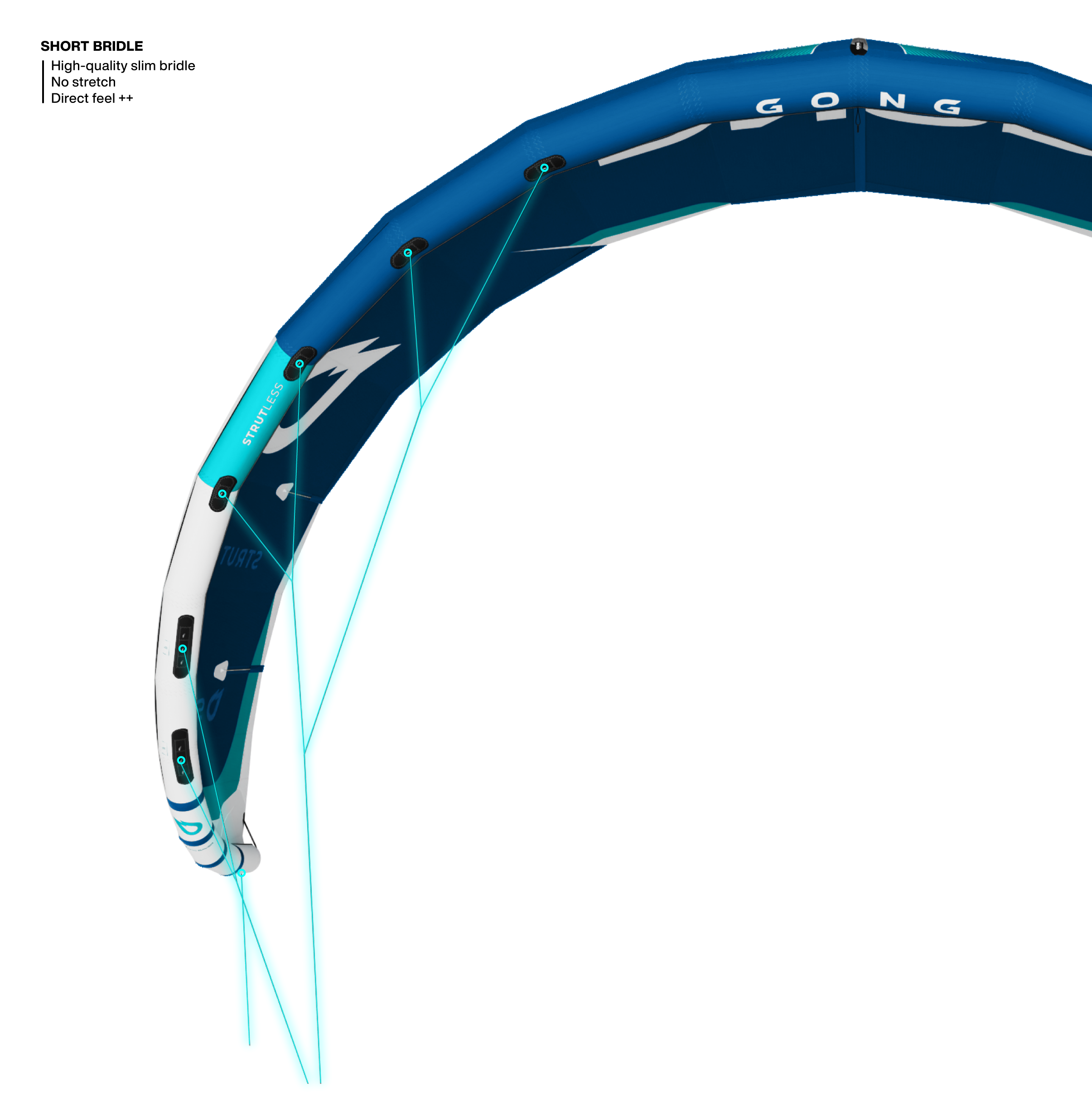 The new short bridle system improves feedback and the feel is much more direct . Everything is more intuitive, allowing you to be in sync with your kite.