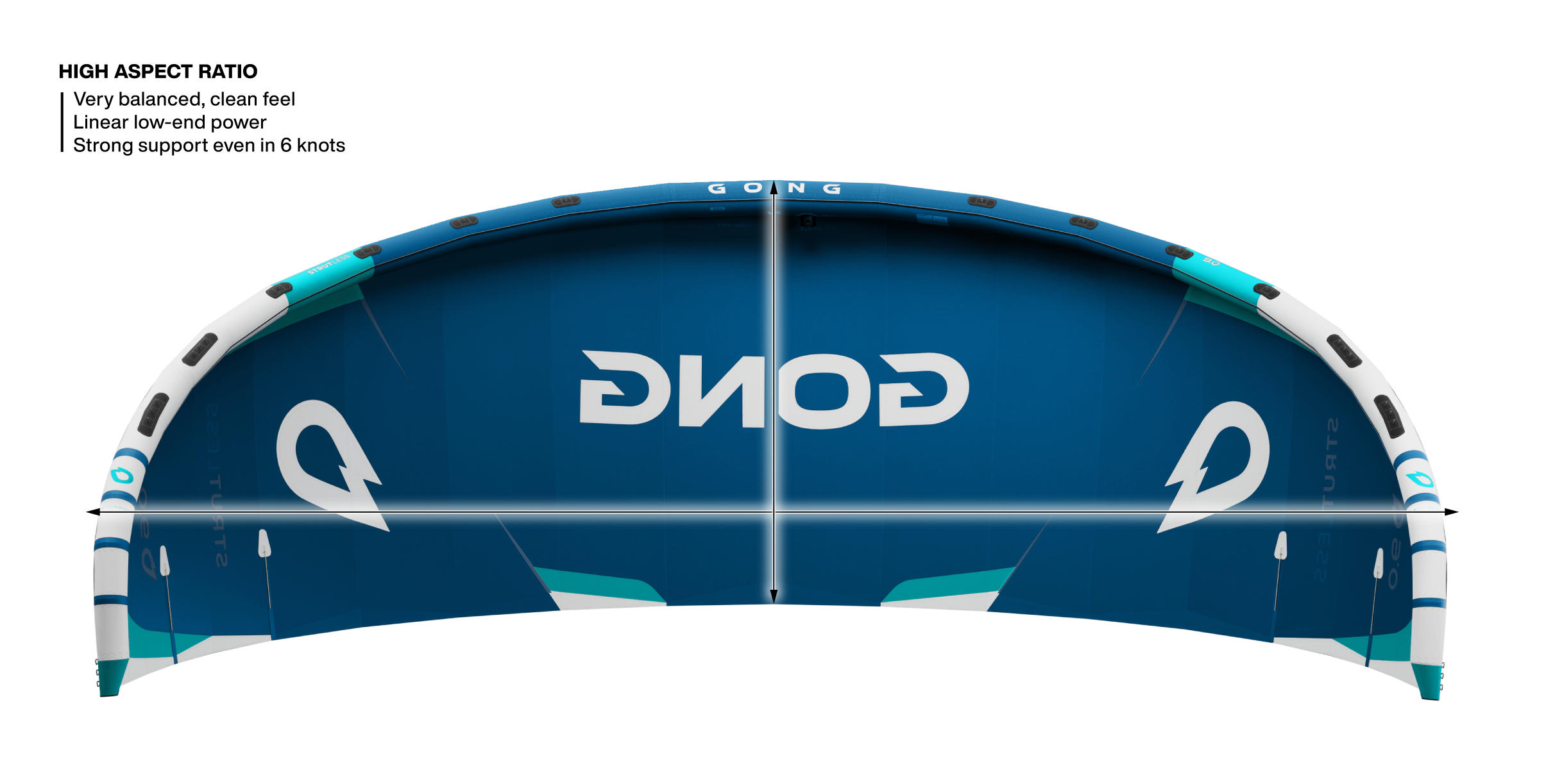 The Strutless gains in low-end power. Ideal for early takeoff without surfacing, but also absolutely stunning in hang time. It glides!
