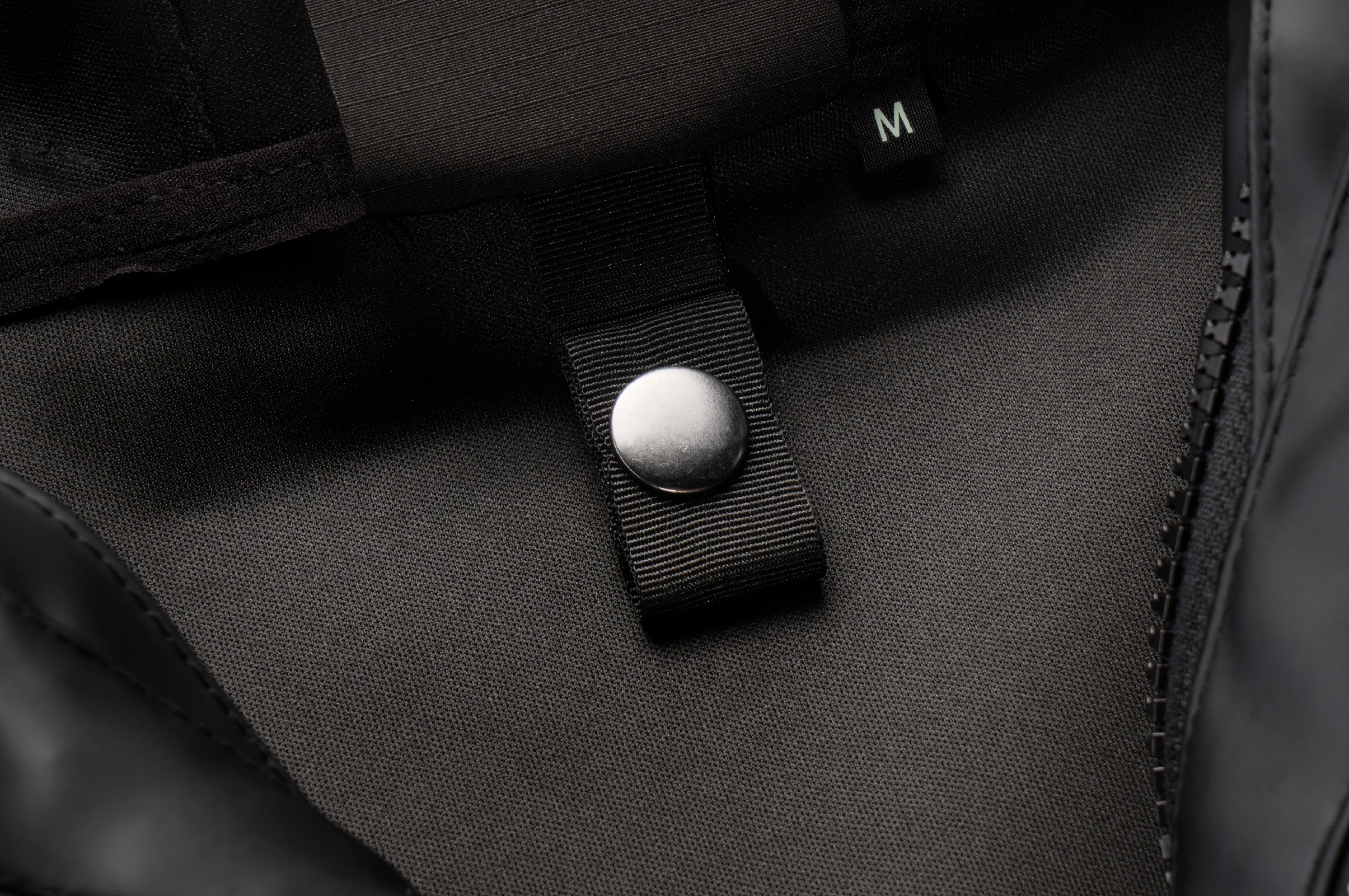 • A loop at the back neckline, which is fastened with a snap button: it stabilizes the fleece inside the coat and prevents any unwanted movement.