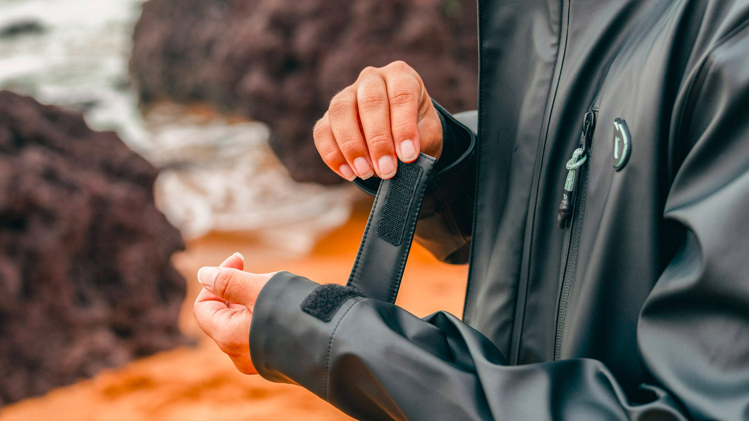 - A loop at each bottom of the sleeve, also equipped with a snap, for precise support and optimal comfort when layers are combined.