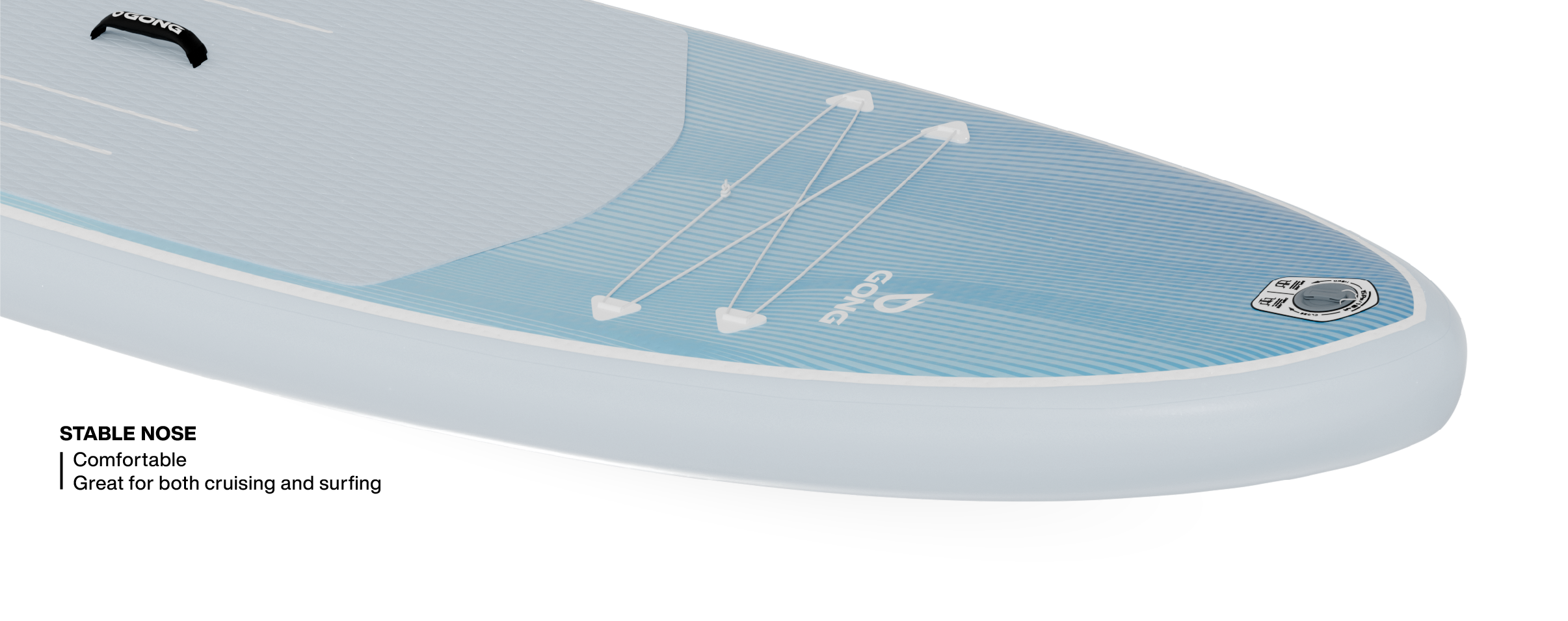 While cruising, you’ll love its smooth and effortless glide, a signature feature of inflatable boards. The nose offers a stable platform that minimizes wobbles. Whether powering through strokes, waiting for waves, or weaving between rocks in hidden spots, you’ll feel in control.