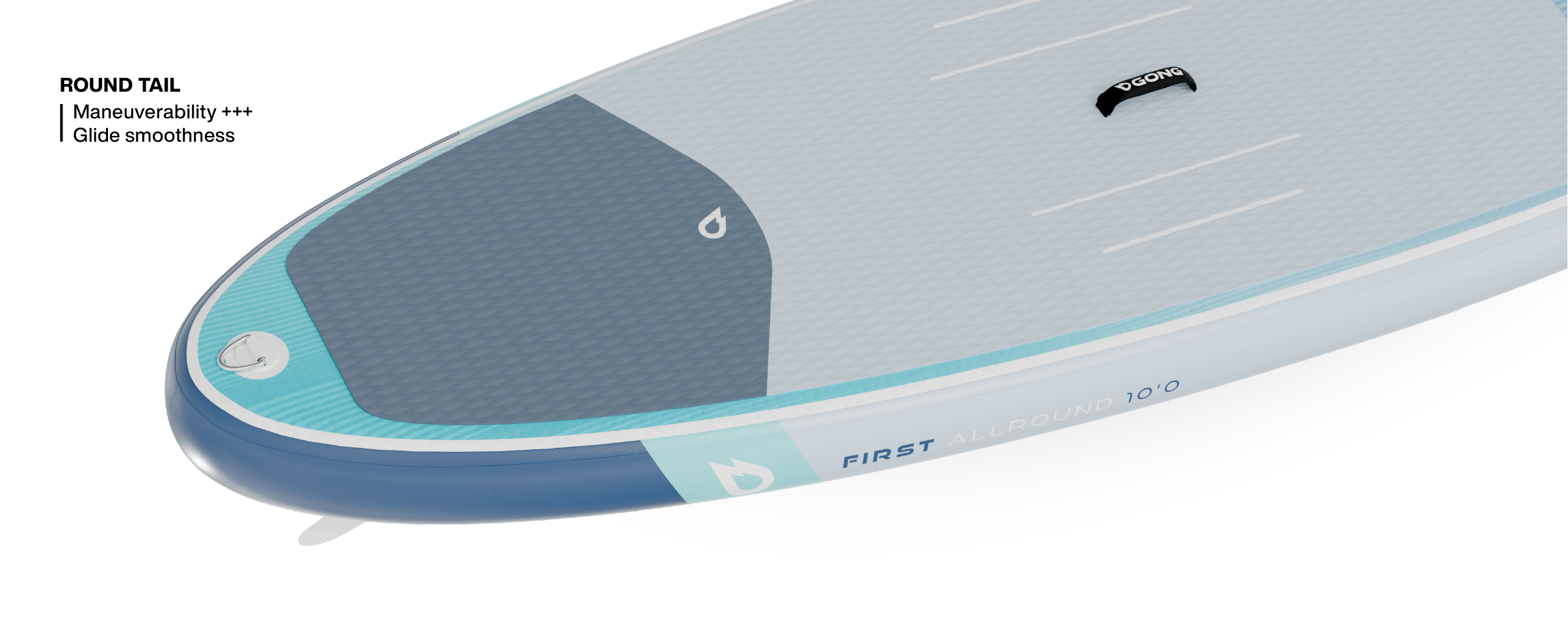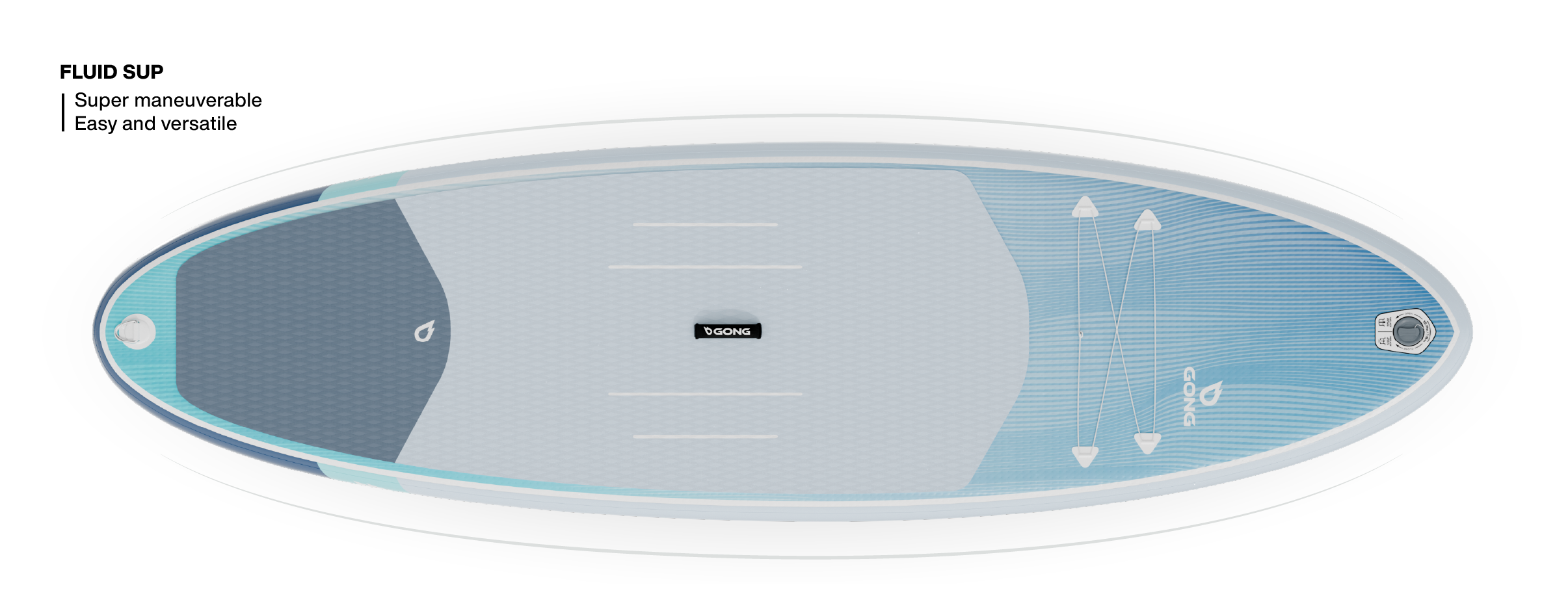 The First Allround SUP features a central US Box fin system, the gold standard for high-performance fins. With the fin playing a crucial role—contributing to 50% of the board’s performance—GONG opted for this precise and adaptable setup on its inflatable SUPs.