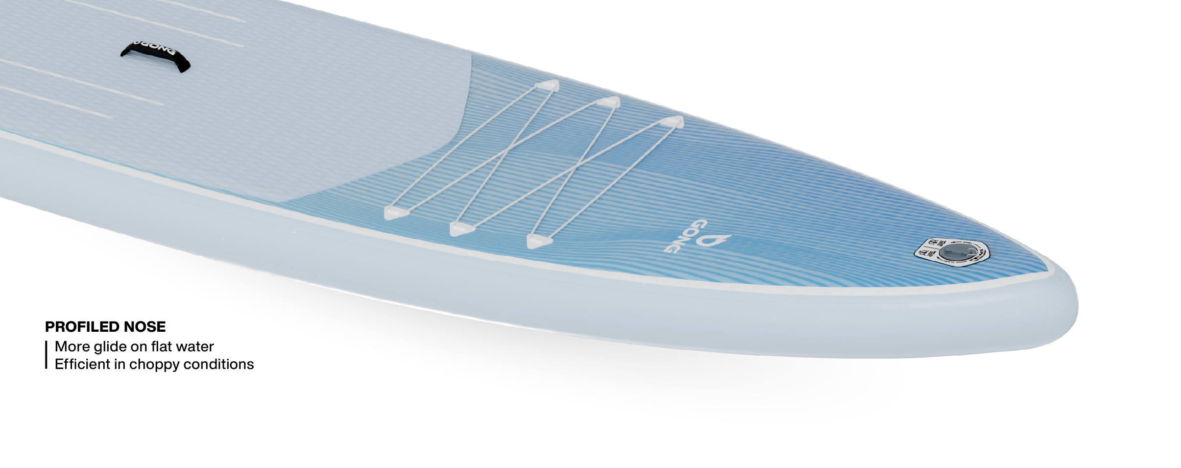 This shape is perfect for cruising, with just the right amount of stability in the rear half and a sharp nose for gliding over the water. It’s a clever adaptation of the thousands of templates we’ve developed over 30 years, enabling a performance that is both effective and easy to handle.