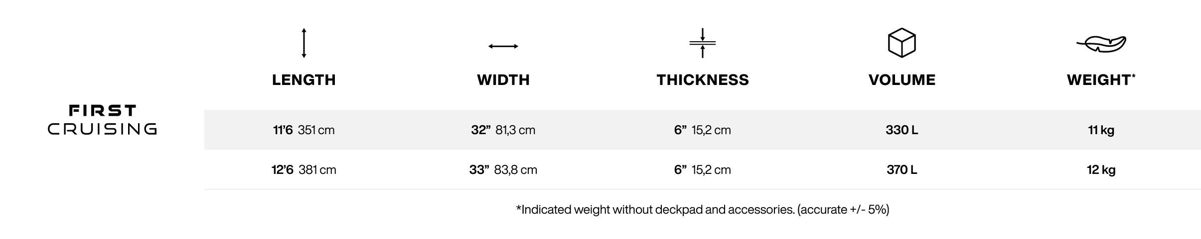 The First Cruising is the perfect cruising board for your sporty outings, but also for relaxed sessions with friends or family.