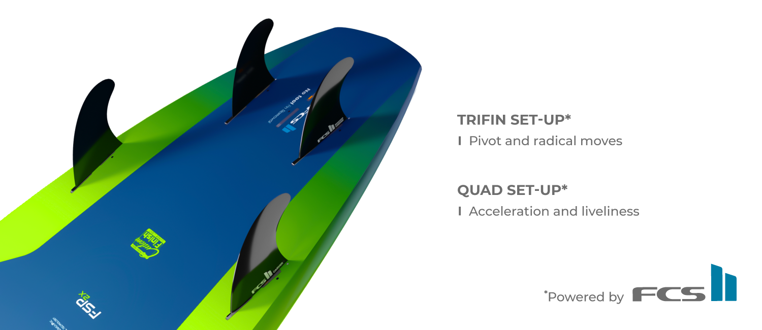 - 1 central box, FCS II, high resistance reinforced with high density PVC along the longitudinal axis of the board.