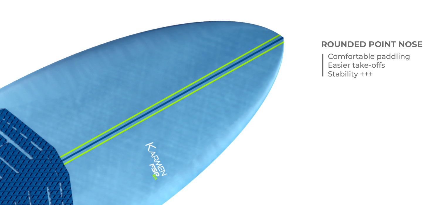 The Karmen FSP 2X is equipped with our higher quality 5mm thick 3D Function pad which offers great comfort and grip. This anti-slip pad is ‘intelligent’ because it offers different sensations depending on the zones. The mix of grooves and open hole designs are made for visual/physical awareness of your stance. Your feet are better positioned and informed of their exact position to offer precise surfing.