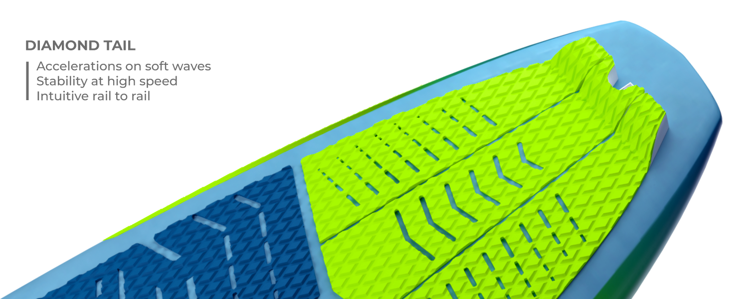 It will be perfect for a Pro who wants comfort and high performance. But also for an almost beginner who will find in the big sizes a mellow and progressive board.
