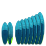It’s a fluid and comfortable shape made in 8 sizes: 6’10, 7’3, 7’8, 7’11, 8’4, 8’9, 9’2 et 9’10 to satisfy a multitude of rider sizes.