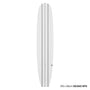 Those two longboards are almost the opposite, but designed for the same type of waves: a retro style for the classic noserider, the Deano, and a very modern, versatile style for the Ten Blues. The Ten blues is one of those modern shapes where the rear half of the board features a lot of shape elements borrowed from the world of shortboarding. With pinched rails and a pronounced edge, you get a great ability to relaunch and can put a lot of pressure underfoot, with the aim of making quick changes of direction. The tail is also thinner to give you more pivot and easy rail-to-rail without having to put a lot of pressure underfoot.