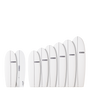 These boards are equipped with a leash plug and 6 FCS I plugs aligned 3 by 3 for solid 3 tab mounting.