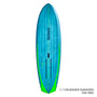 Its concept features a “double tail” with a wide diamond at the top. This stabilizes the board when stationary and boosts takeoff efficiency whether paddling or in the bumps. It has a planing hull that maximizes glide and minimizes the impact of touchdowns.