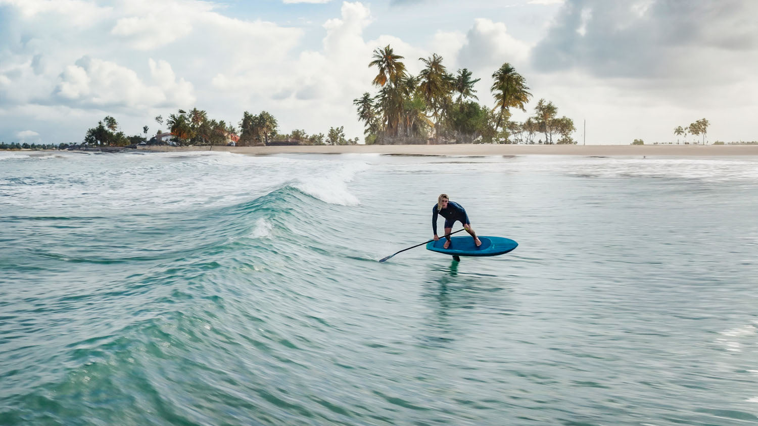 And on flat, windless water, it’s a fantastic toy for getting in shape and having fun with friends, flying with a huge foil using just the paddle.