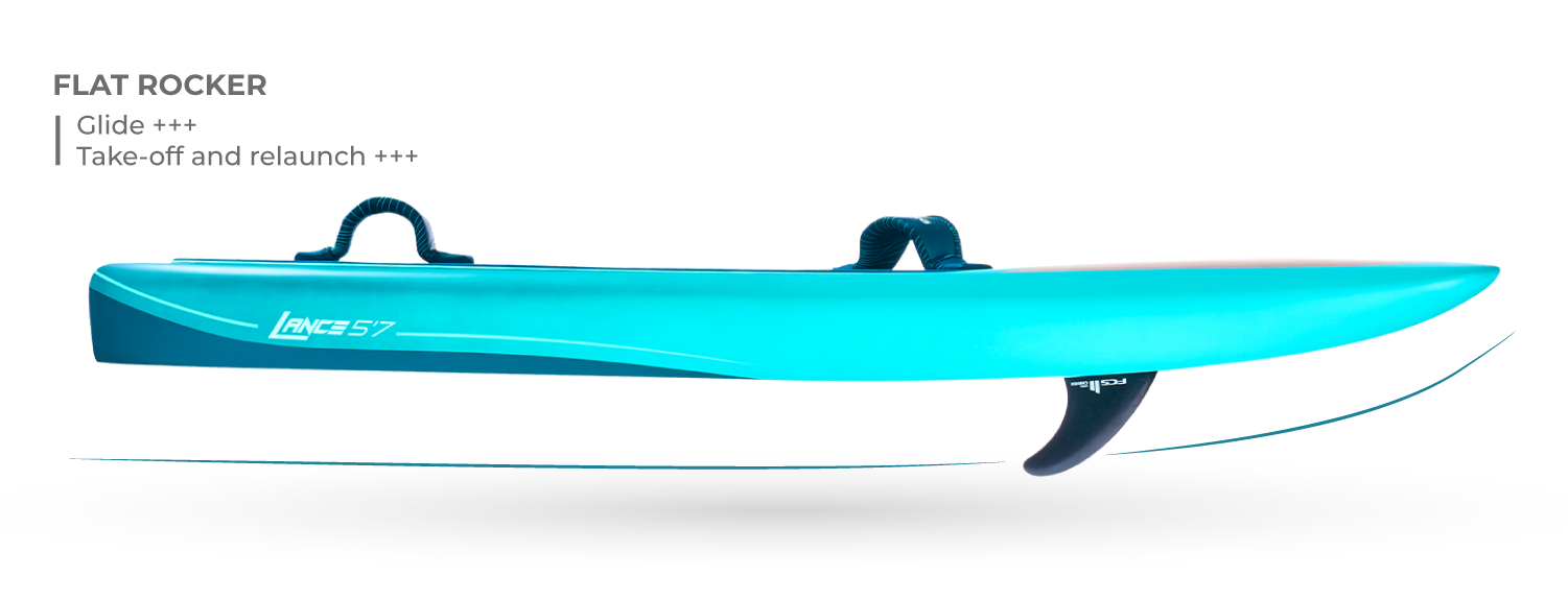 The double concave under the nose makes touchdowns completely painless. Instead of slowing down, the LANCE will bounce off the water and immediately take flight. This lack of penalty will make it easier for you to begin serenely and will make you progress even faster…