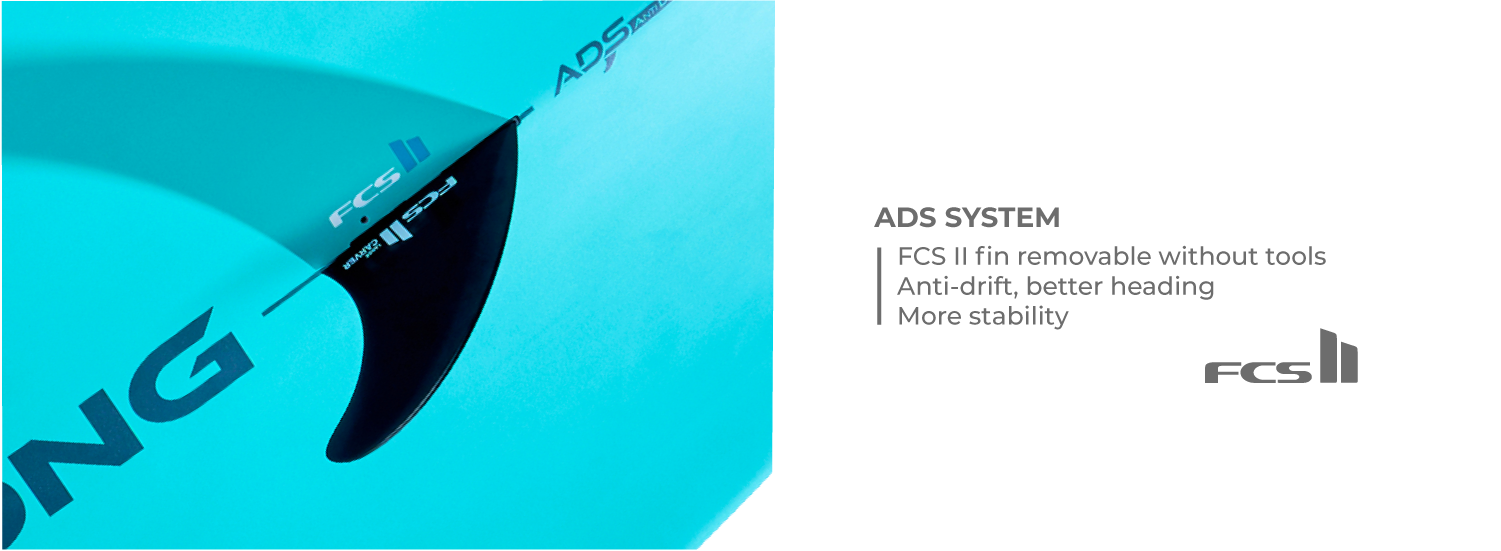 The central front fin Anti Drift System axes the board as if it was on rails, but without ever hindering the ability to take angle in the curves.