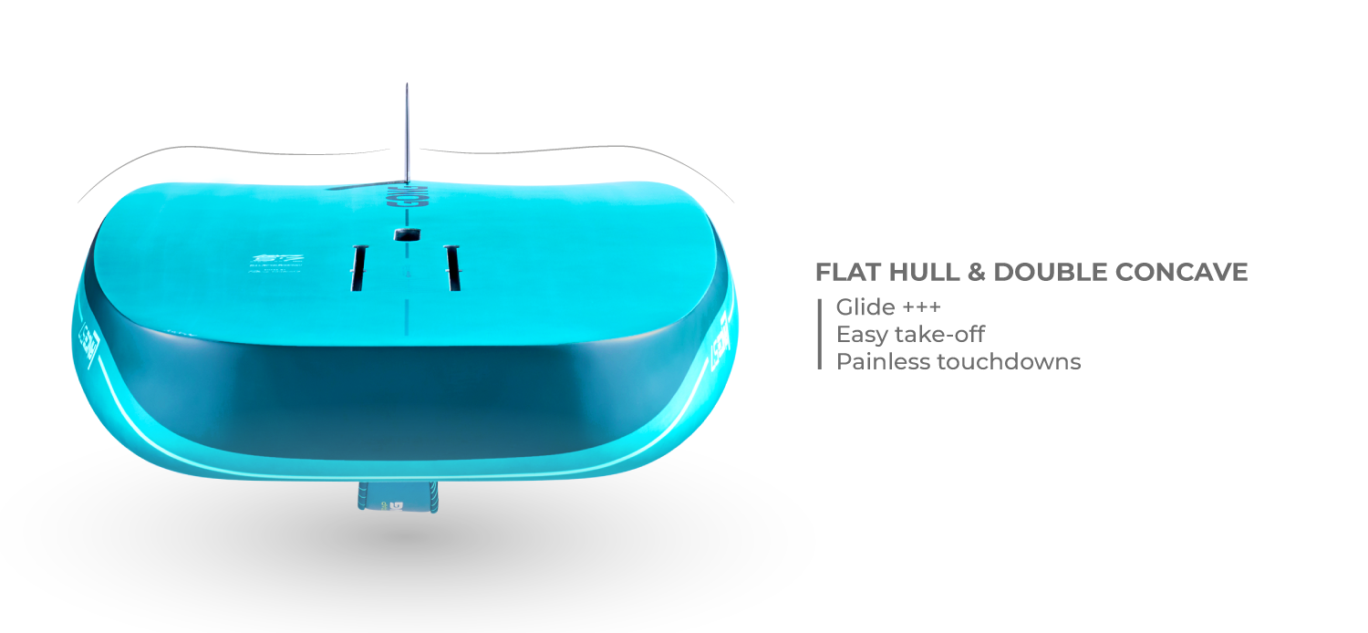 The flat hull of the rear provides optimal water flow, allowing for maximum glide during ultra-easy and fast take off whatever your level. The double concave on the front channels the water flow and softens touchdowns, making them painless.