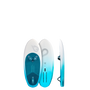 The flat hull on the rear third is 100% planing. Water flow is optimal, allowing maximum glide to take off extremely easily and quickly, even with a small foil. You can reduce your front wing by 200 cm² for the same takeoff. The double concave at the front channels water flow and softens touchdowns and landings to make them painless.