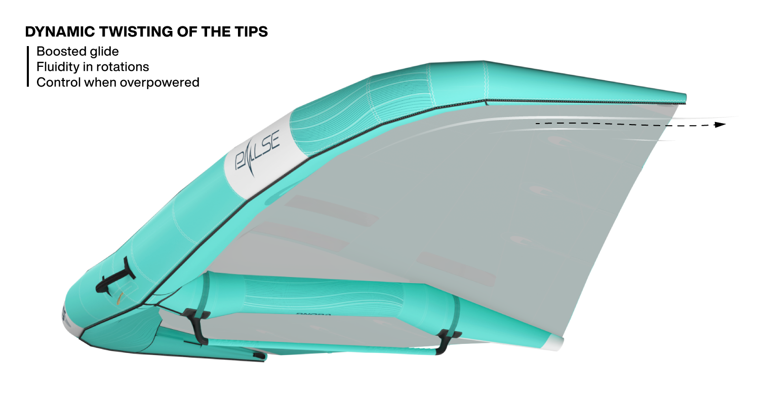 The gradual yet complete reduction of the leading edge, thanks to the LDS system, allows the Pulse to breathe and accelerate continuously.
