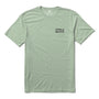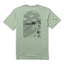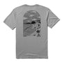 The Vissla Cliffside Comp Lite Eco Drirelease is a men's short-sleeved t-shirt made from a blend of recycled polyester and cotton. It's lightweight and comfortable, suitable for everyday wear or active pursuits. The prints on the chest and back add a subtle graphic detail.
