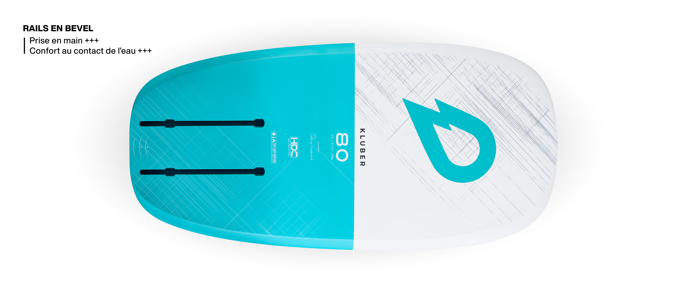 La poids de la Kluber HDC 80, planche finie avec son pad est de 2 kg ! Avec son prix jamais vu à ce niveau de performance, une extrême rigidité et solidité, cette technologie propose un produit historique dans l’histoire des boards de dock/beach start. Et vous avez même la possibilité de vous différencier avec une large gamme de couleurs.