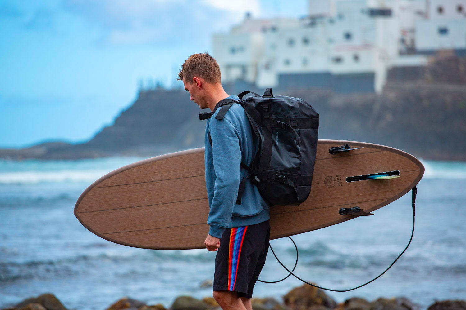 Equipé de bretelles matelassées amovibles, vous pouvez facilement et confortablement le porter en mode sac à dos pour marcher ou faire du vélo jusqu’à votre spot. Il peut aussi être porté en bandoulière ou à la main.
